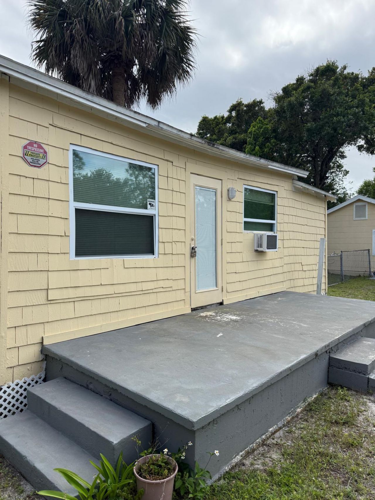 Cozy one bedroom one bath cottage in a cute fenced compound. The cottage comes with new kitchen cabinets and gas stove and appliances. Just freshly painted with wood flooring, blinds and AC units . Has a large open patio, fence yard. includes water and sewer.